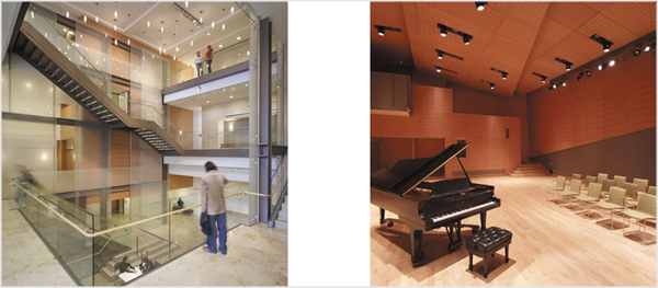 The new home for the San Francisco Conservatory of Music contains three performance spaces distinct in scale and character as well as a library, individual practice rooms and administrative spaces. The warm, richly detailed performance spaces are linked by an airy, multiple level lobby.